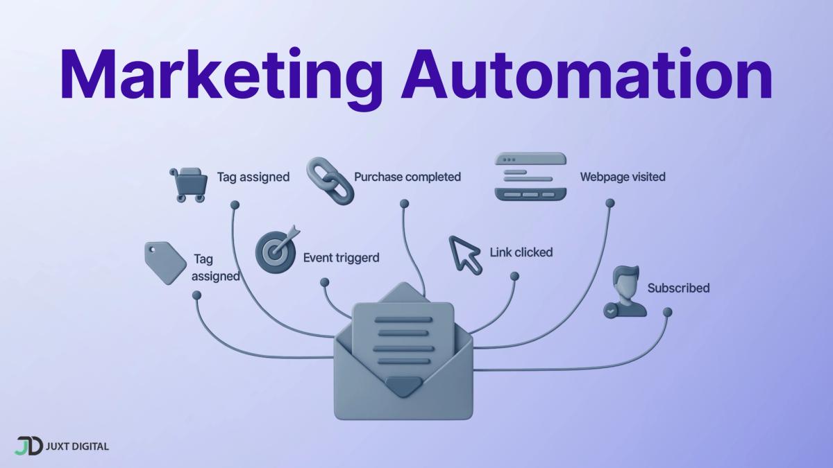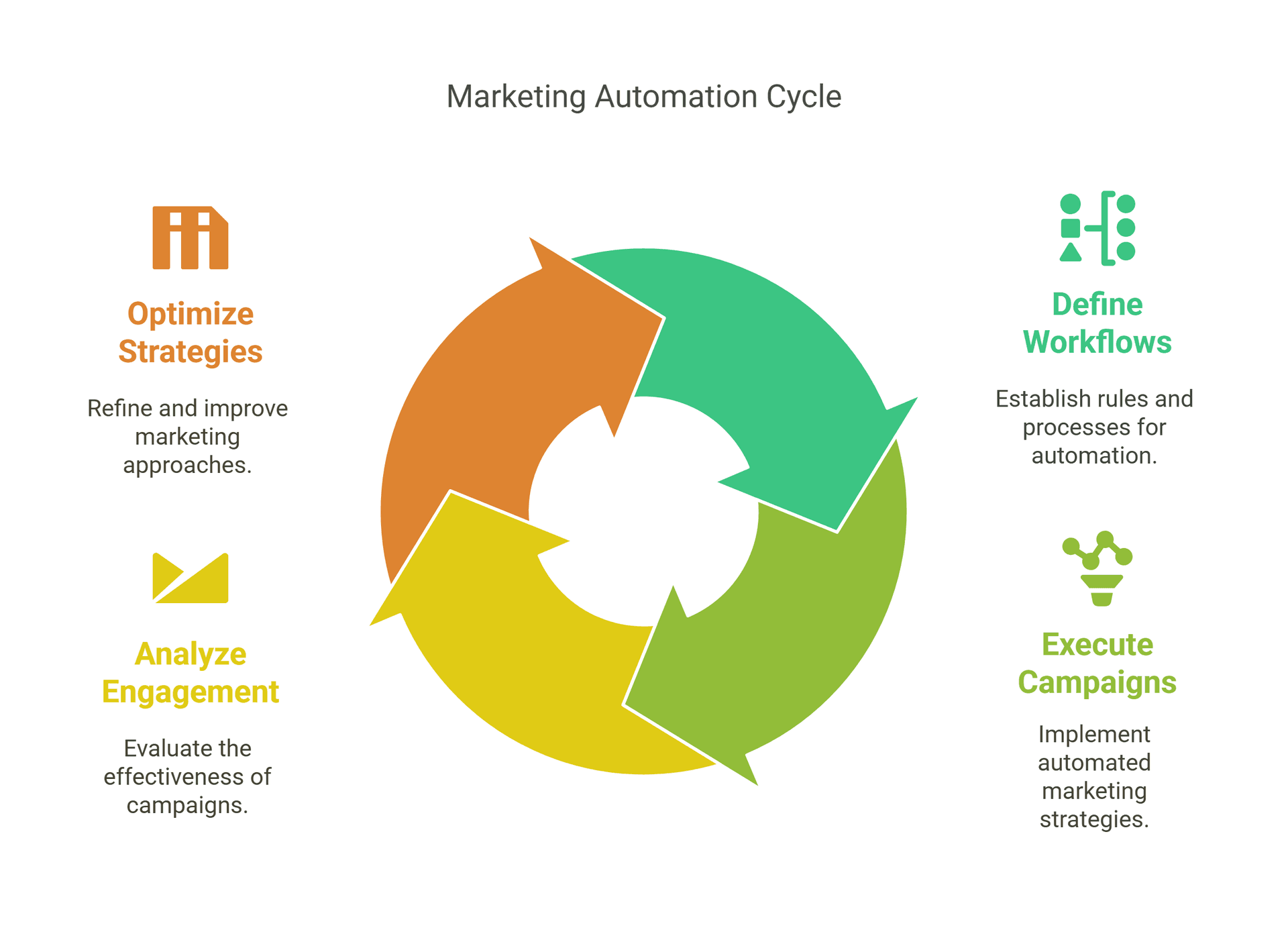 Marketing automation uses software to trigger actions based on pre-defined rules and workflows. For example, a marketer might create a workflow that automatically sends a welcome email to new subscribers or an abandoned cart reminder to shoppers who leave items in their online shopping carts.